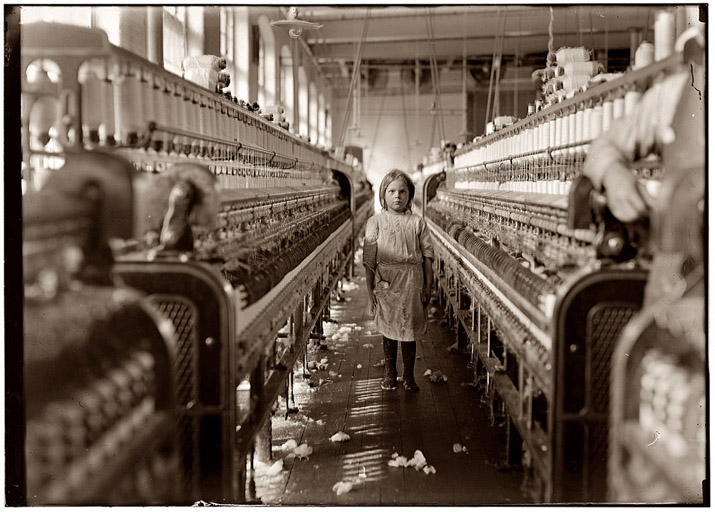 “December 3rd, 1908, A little Spinner in the Mollahon Mills, Newberry, S.C. Witness Sara R. Hine.” Lewis Hine