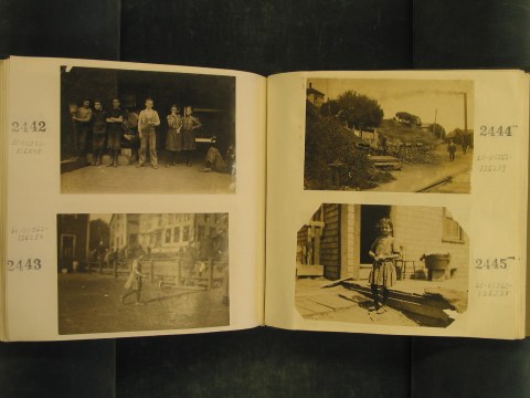 Alongside his meticulous note-taking and written documentation, Hine maintained albums of his edited photographs (see above) – numbered and assigned, specific to each location where the images had been made. What is significant also is the sophisticated dissemination of the vast amount of photographs Hine generated.