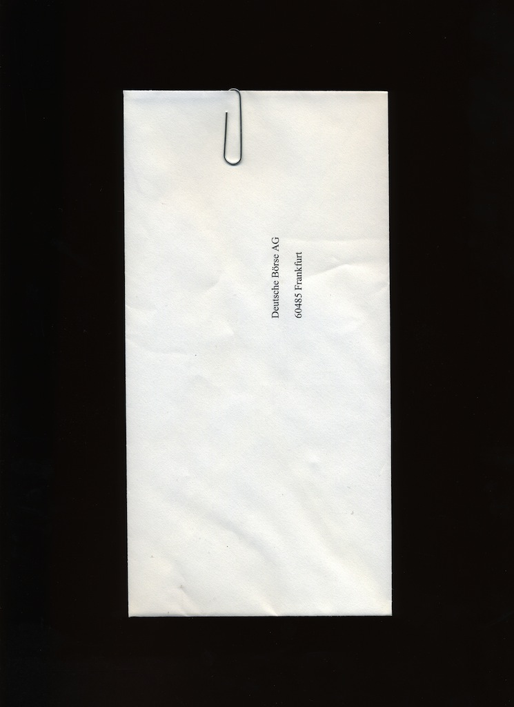 Envelope & Paperclip, December 2011 (Letter from Irish Ambassador to Germany requesting support and project access from Deutsche Börse AG) from THE MARKET, a project by Mark Curran