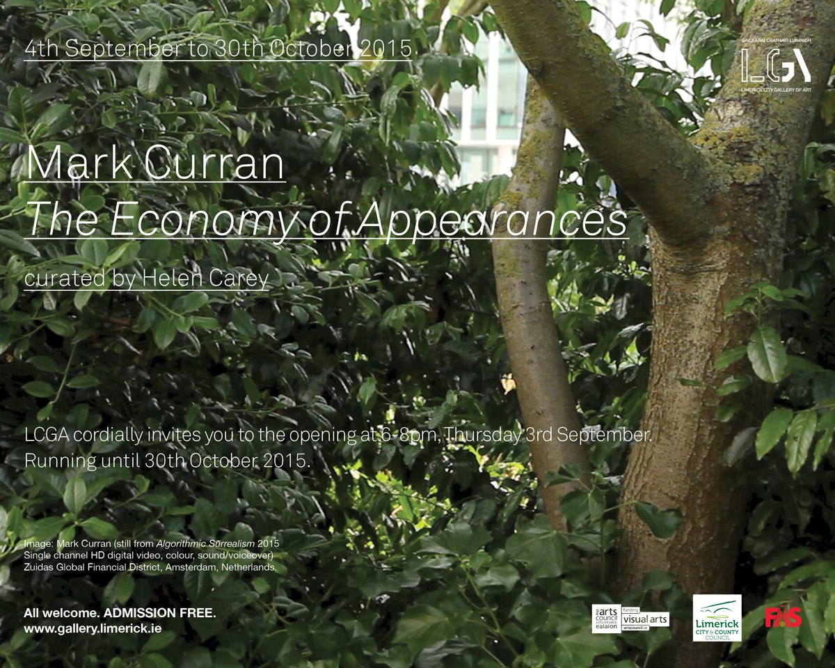 ‘In Mark Curran’s practice, projects unfold over time. (Since the late nineties) Curran has undertaken a cycle of long-term, ethnographically-informed multimedia research projects addressing the predatory context resulting from migrations and flows of global capital…in this major exhibition, The Economy of Appearances, he draws these projects together for the first time, while expanding the enquiry with newly commissioned work completed in Amsterdam. Incorporating photographs, film, sound, artifactual material and testimony, themes include algorithmic machinery of financial markets, innovator of this technology, absorption of crises as normalisation of deviance, and long range mapping and consequences of financial activity distanced from citizens and everyday life…’